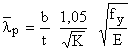 À cause de la plasticité du matériau, la charge d'écrasement fournit une limite à la résistance de la plaque et constitue une limite tronquée de la courbe de flambement élastique. La transition entre l'écrasement et le voilement a lieu pour scr = fy, c'est-à-dire pour la valeur suivante de l'élancement :